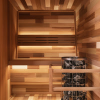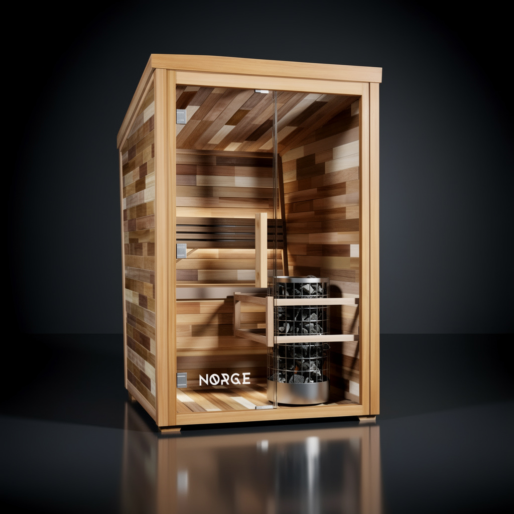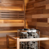 The Eld Outdoor Traditional Sauna is engineered around classic Finnish stone heat, creating deep ambient warmth and the ability to produce steam when water is ladled over heated stones.